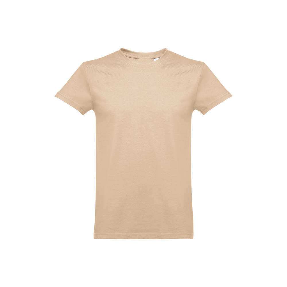 T-shirt para homem em formato tubular e de corte regular em malha jersey 100% algodão (190 g/m²) com fio de algodão cardado (cor 183: 90% algodão/10% viscose). Contém gola em Rib 1×1 com fita de reforço em jersey e costura dupla nas mangas e parte inferior. Tamanhos: XS, S, M, L, XL, XXL
